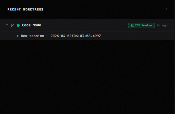For example, if a Code Mode worktree was opened 5 hours ago with a new session, you can click directly into it to resume that work from exactly where it left off.