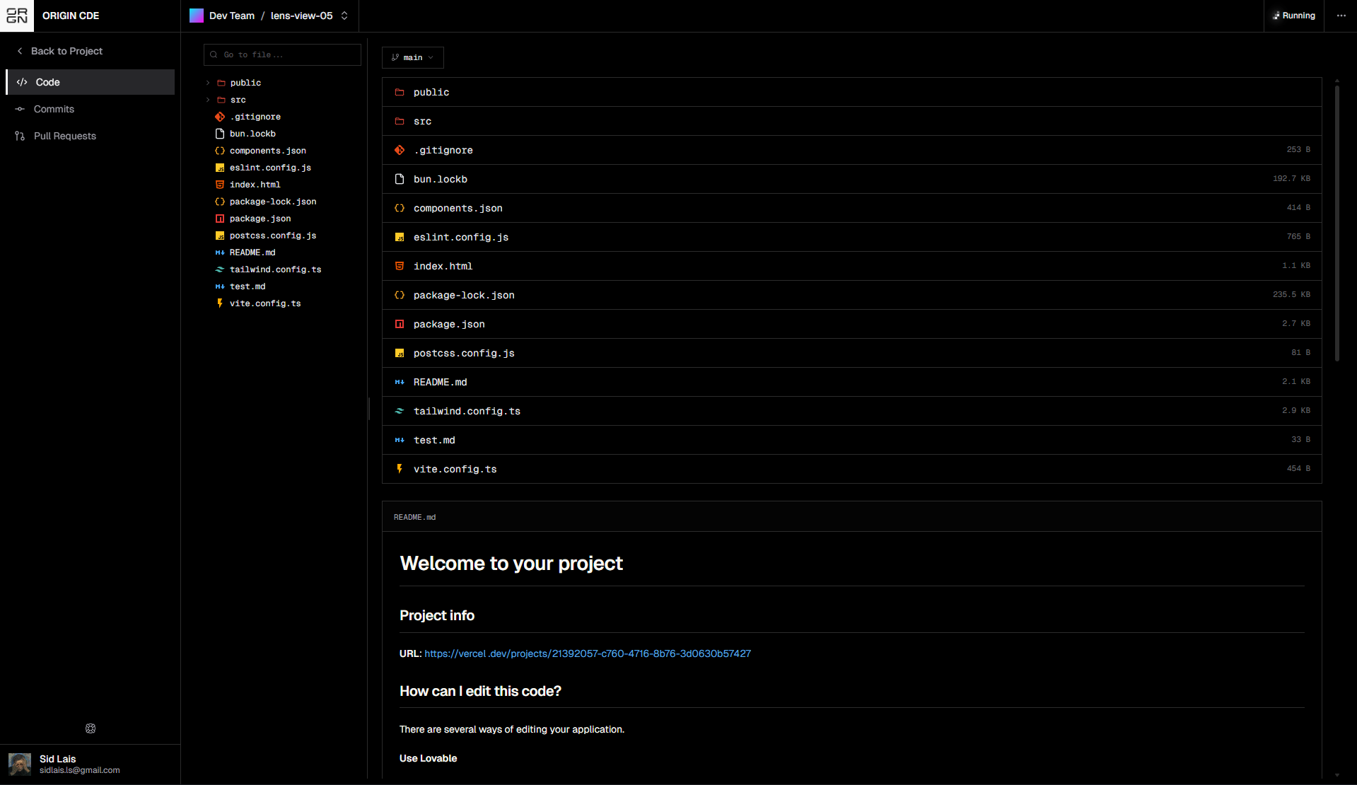 The Explorer provides a direct view into the repository connected to your ORGN project. It allows you to browse source files, review commit history, and manage pull requests without leaving the development workspace.