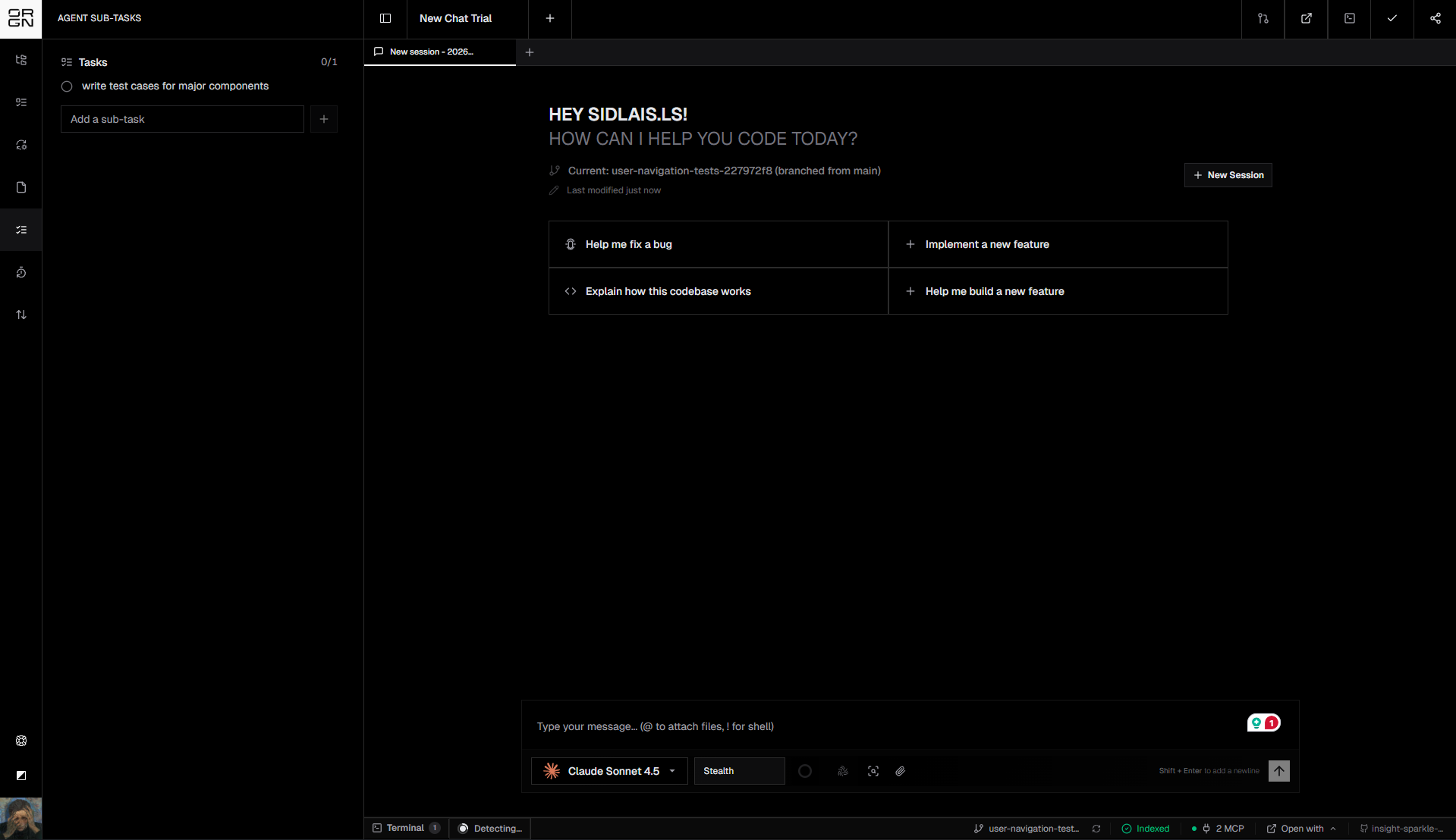 Agent Sub-Tasks allow you to break down a session’s objective into smaller, trackable units of work. They provide lightweight structure within an active session, helping organize complex implementation or analysis into discrete steps.